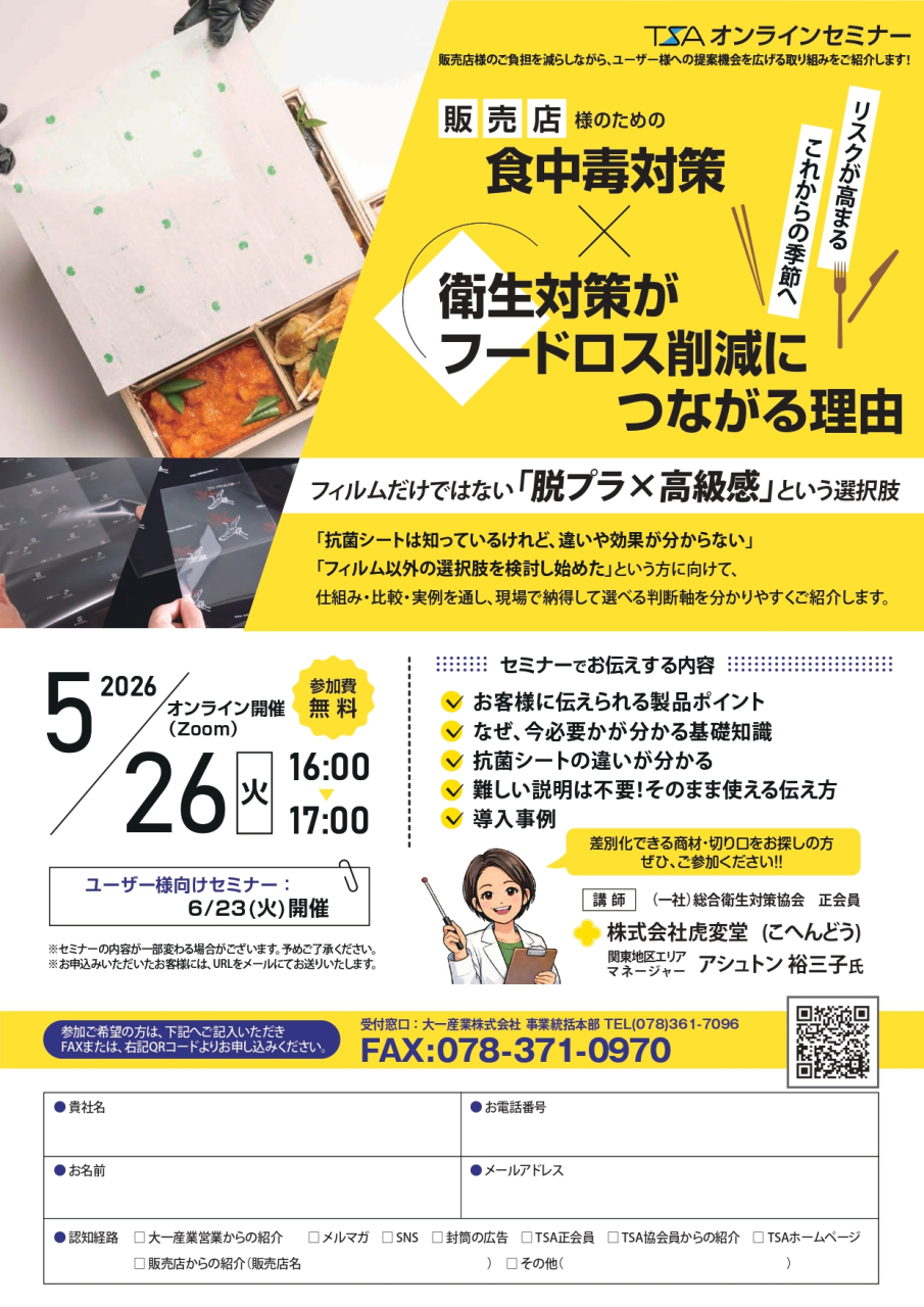 TSA ZOOMセミナー日程(年3回開催)