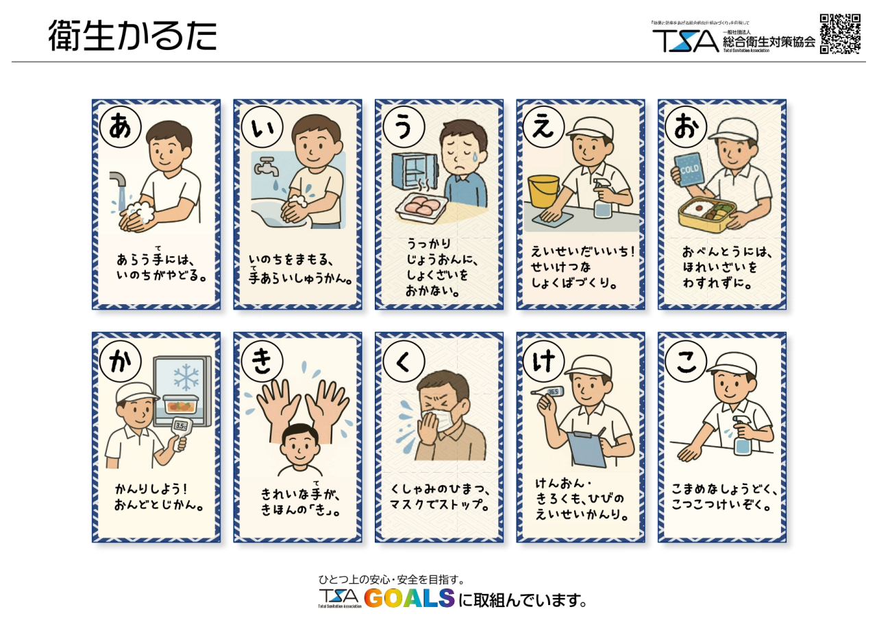 TSAでは、より良い衛生環境作りを実現するために必要な17項目を標語とロゴを併せて