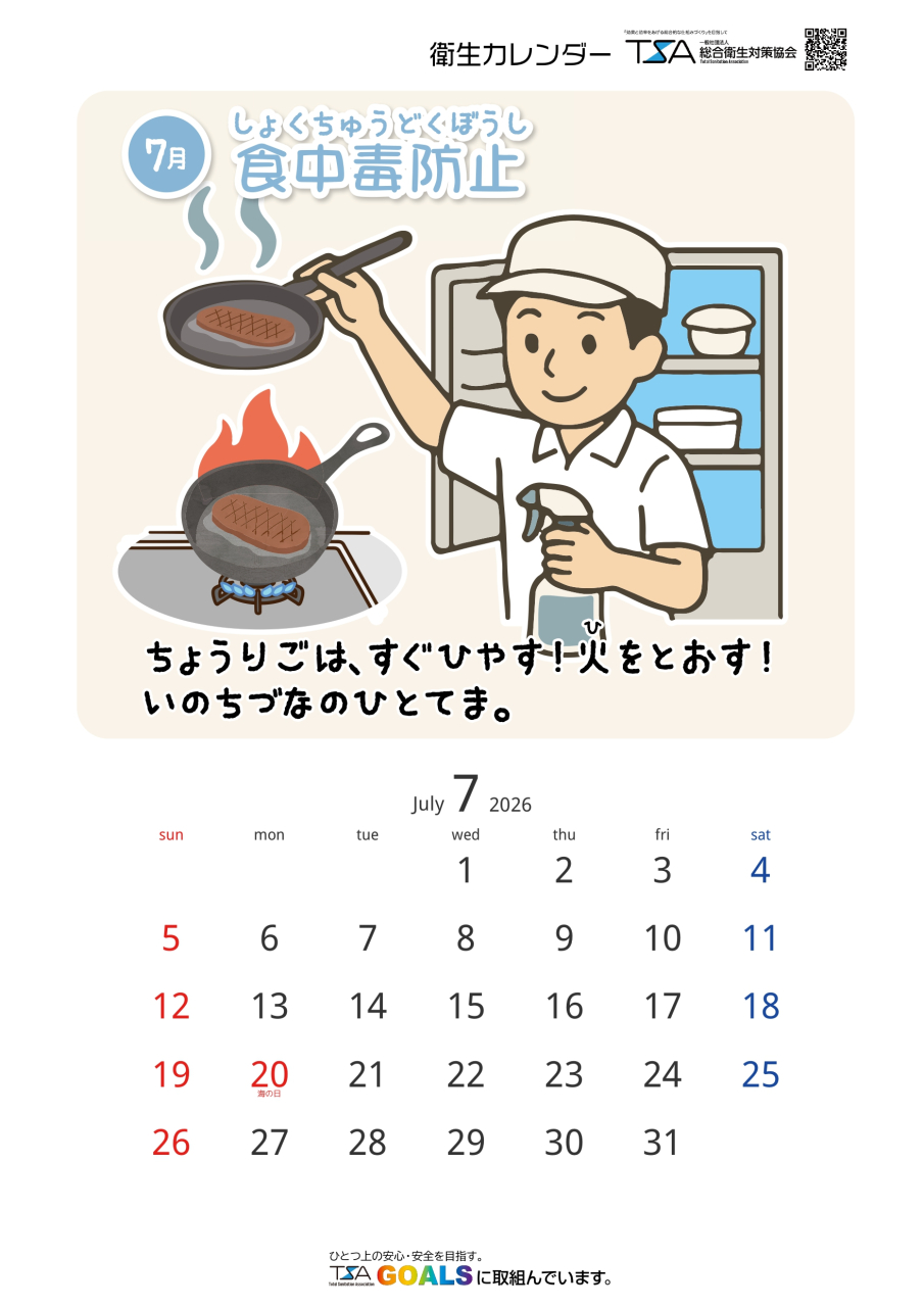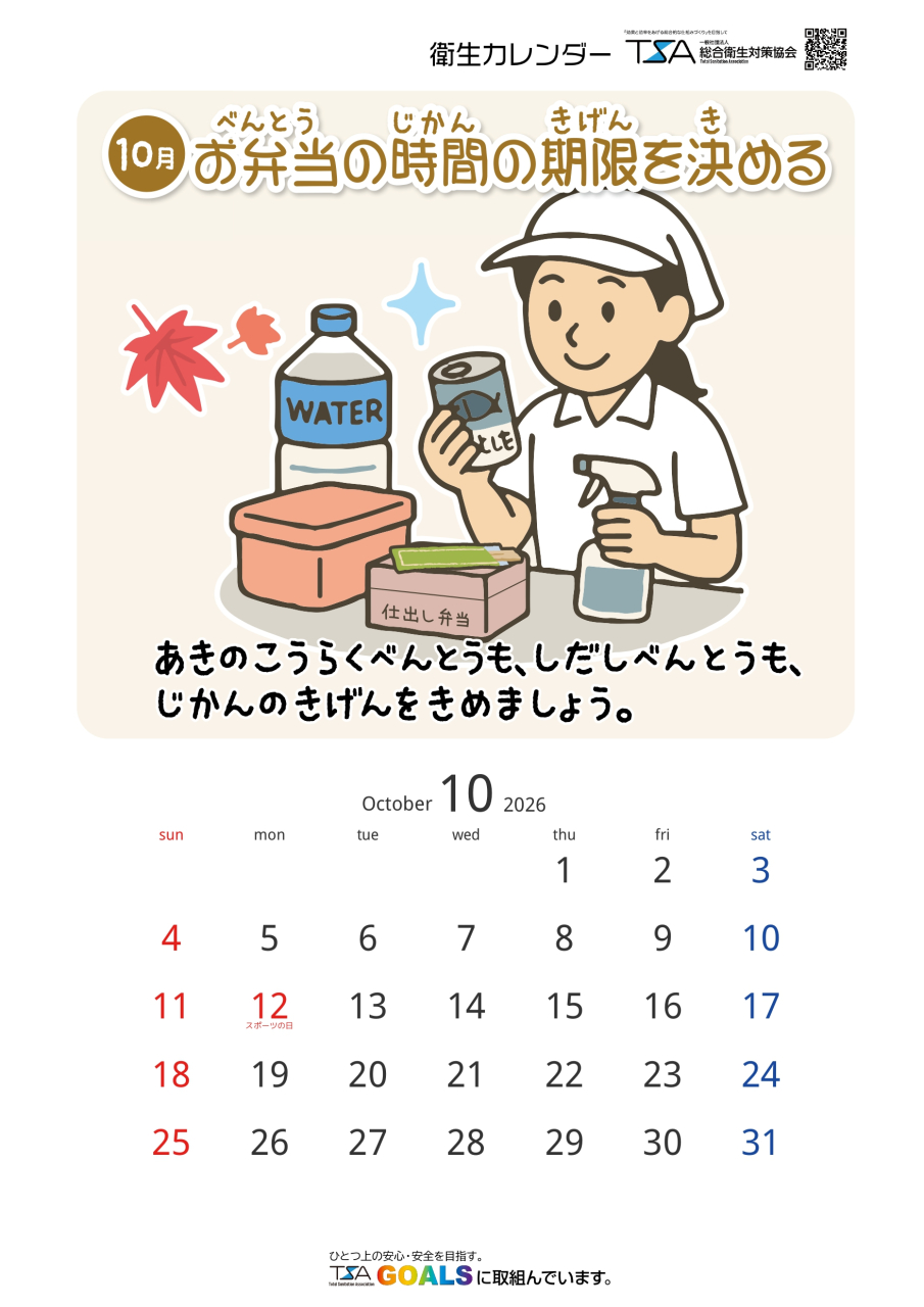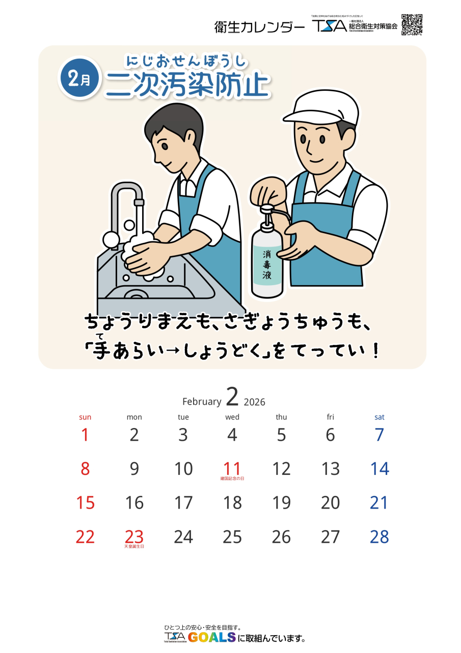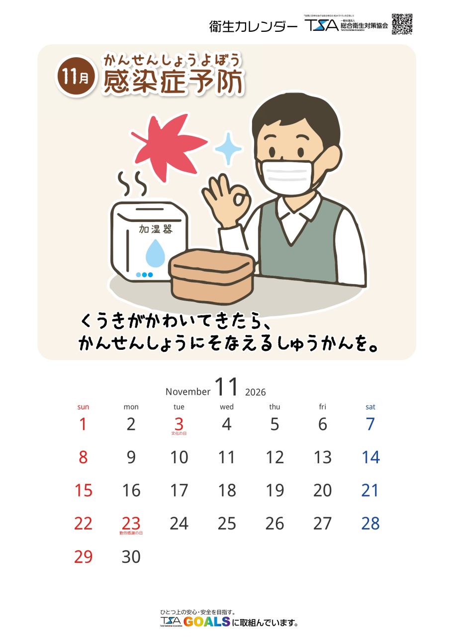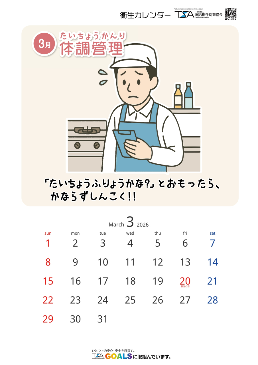 月ごとに、注意事項を明記した衛生カレンダーです★